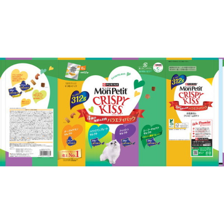 【シーフード&ツナセレクト】白身魚、チキン、米、チキンミール、牛脂、えんどう豆でんぷん、大麦、コーングルテン、たんぱく加水分解物、キャッサバ粉、モルトエキス、ツナパウダー、ぶどう糖、酵母、えびパウダー、かにパウダー、小魚パウダー、ミネラル類(カルシウム、カリウム、ナトリウム、クロライド、鉄、銅、マンガン、亜鉛、ヨウ素、セレン)、酸味料、アミノ酸類(グリシン、タウリン)、ビタミン類(A、D、E、K、B1、B2、パントテン酸、ナイアシン、B6、葉酸、ビオチン、B12、コリン、C)、着色料(食用赤色40号、食用青色2号、食用黄色4号、食用黄色5号)、酸化防止剤(ブチルヒドロキシアニソール、ジブチルヒドロキシトルエン、ミックストコフェロール)