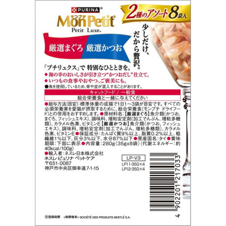 【厳選まぐろ】魚介類(かつお、まぐろ、フィッシュエキス)、調味料、増粘安定剤(加工でんぷん、増粘多糖類)、カラメル色素、ビタミンE