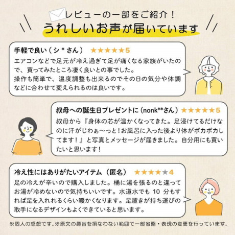 ・入浴剤やアロマを入れると変色や着色の可能性があります。仕様上直接ヒーターと水が触れるため、通常の水道水(お湯)でご使用いただくことを推奨しております。