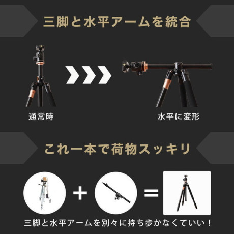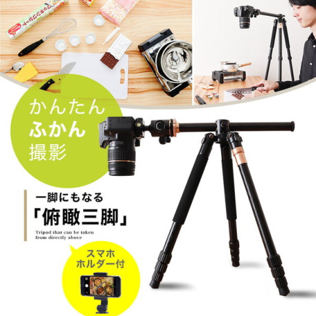 センターポールを付け替えるだけで俯瞰(ふかん)撮影ができる三脚です。