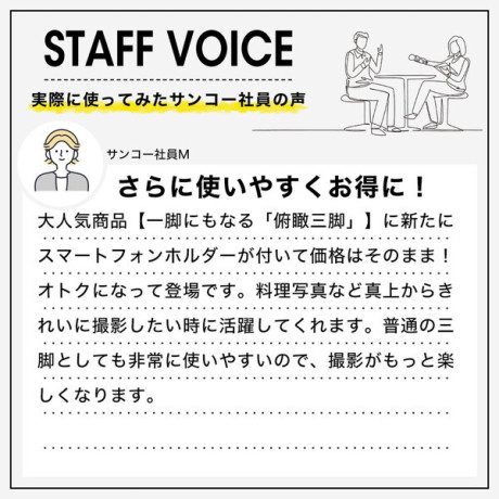 ★ 真上からの撮影が楽にでき、さらに一脚にもなるスマートフ ォンホルダー付き三脚