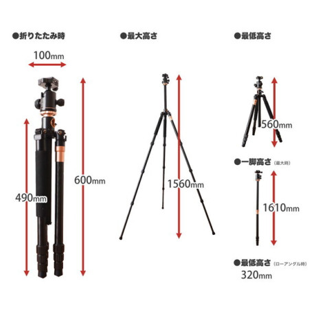 * 最大高:1560mm※石突から雲台まで、開脚時