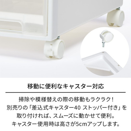 別売りの差し込み式キャスターを取り付ければ、スムーズに動かせて便利。