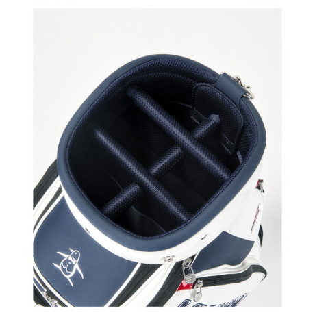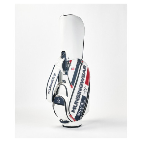 ★ クラブの出し入れをスムーズに行える大口径の9.5型キャディバッグ。★ 大小合わせて7つのポケットを備えており、収納力も十分な設計です。★ アップリケで施した大きなロゴがデザインポイントに。★ 重厚感あるフォルムも相まって、スポーティかつ上質な雰囲気を漂わせます。★ マンシングウェアらしいアメリカントリコロールカラーです。* サイズ: 9.5型* 重量: 3.4kg* 47インチ対応* 6分割* 素材: 合成皮革(PU加工)/ポリエステル(PU加工)* 原産国: 中国