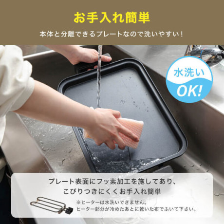 プレート表面にフッ素加工を施してあり、こびりつきにくくお手入れ簡単