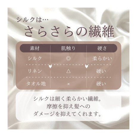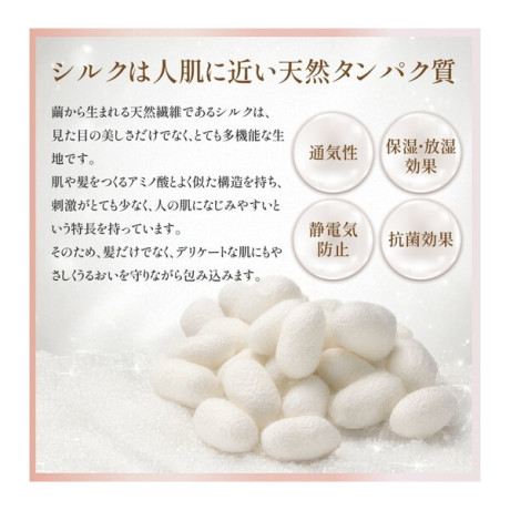 ★ シルクは、なめらかな肌触りで、とても素肌や髪にやさしく吸湿性、放湿性にも優れます。