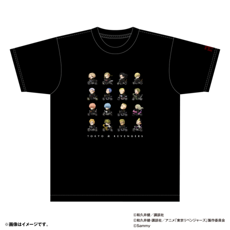 「スマスロ 東京リベンジャーズ」のミニキャラ集合Tシャツが登場!バイクに乗った可愛らしいミニキャラが集合した前面プリントのTシャツです!