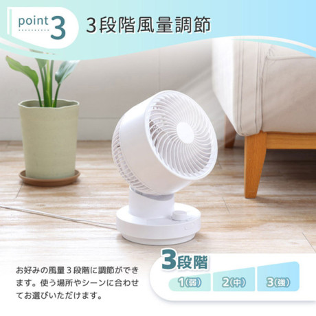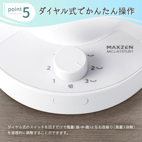 ダイヤル式のスイッチを回すだけで風量(弱・中・強)を左右首振り(風量3段階)を直感的に調整することができます。