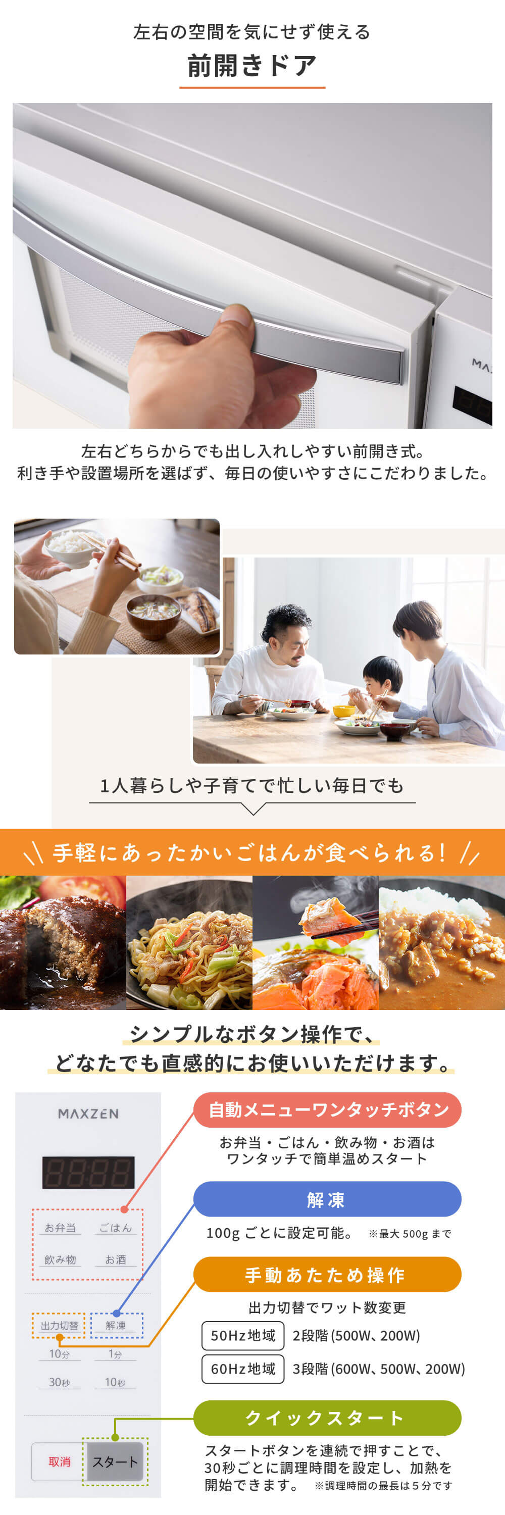 お弁当・ごはん・飲み物・お酒はワンタッチで簡単温めスタート