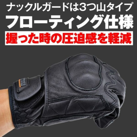・手の甲側にナックルガードを配置し、転倒時のプロテクション効果を高めます。