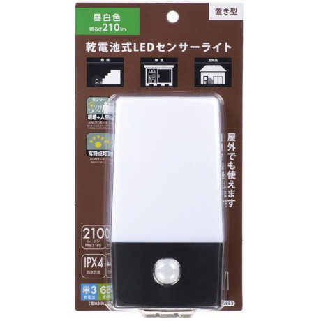 ※ 本製品は完全防水ではありませんので、大量の水がかかる場所や湿気の多い浴室などでは使用しないでください※ 素早くセンサーの検知エリアを通り過ぎたり、センサーに向かって直進した場合は、センサーが作動しないことがあります※ 乾電池の容量が少なくなると正常に作動しないことがあります※ 人感センサーは直射日光のあたる場所や、エアコンの吹き出し口など、周囲の温度と人の体温との差が少ない場合、検知性能が落ちたり、誤作動するおそれがあります※ LEDは交換できません