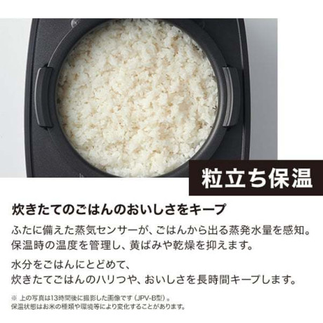 蒸気センサーで、昇温時の温度を管理し、蒸発水量をコントロール。水分をごはんにとどめて炊きたてごはんのおいしさを長時間保ちます。