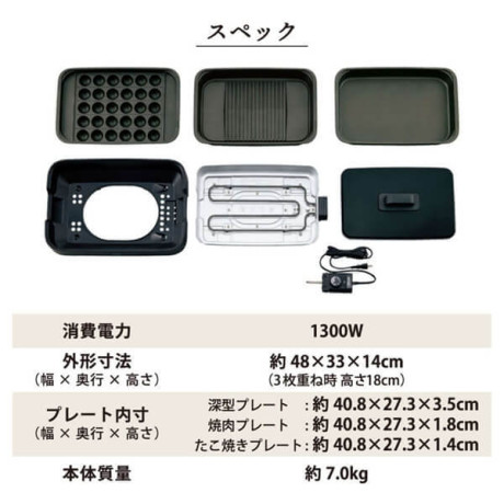 ★ 「深型プレート」「傾斜溝つき焼肉プレート」「区切り線つきたこ焼きプレート」の3枚プレート。