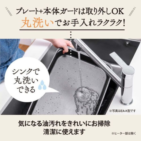 本体ガードは分解できて丸洗いできるので、気になる油汚れもきれいに落とせます。