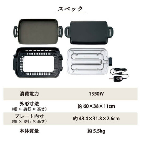 大きなお好み焼きが2枚焼ける、ワイド48cmの遠赤平面プレート。