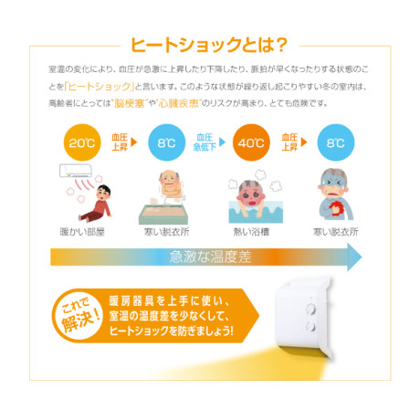 ★ 暖房器具を上手に使い、室温の温度差を少なくして、ヒートショックを防ぎましょう。