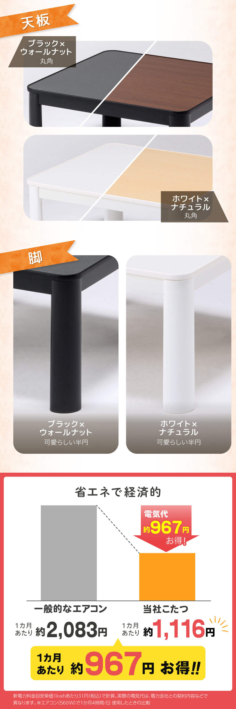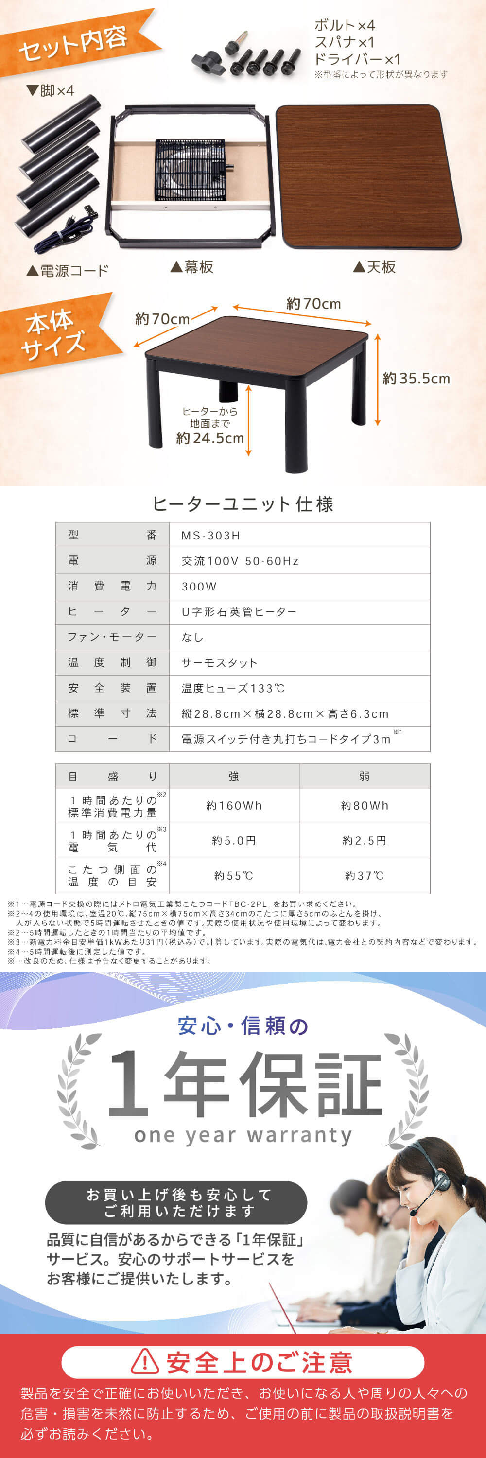 * セット内容:幕板、天板、脚×4、電源コード、ボルト×4、スパナ×1、ドライバー×1