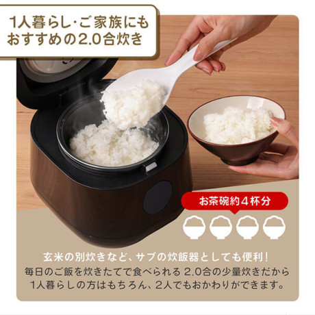 毎日のご飯を炊きたてで食べられる2.0合の少量炊きだから1人暮らしの方はもちろん、2でもおわかりができます。