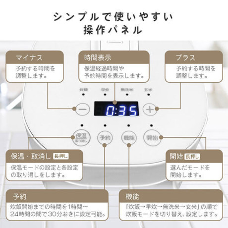 * 質量: 2合炊き(玄米は1.5合まで)