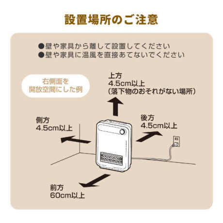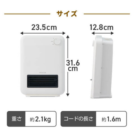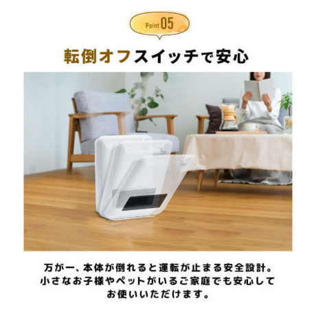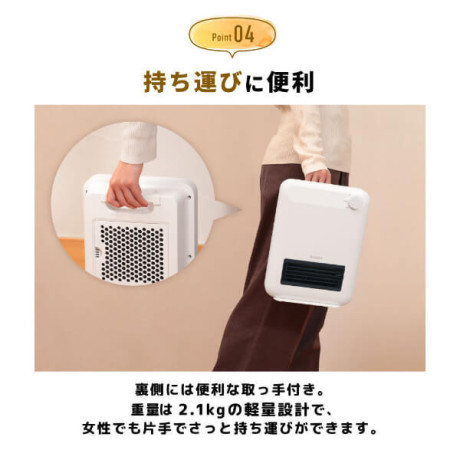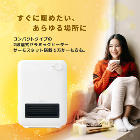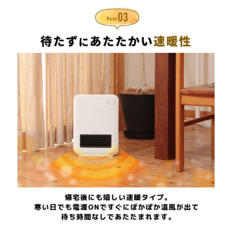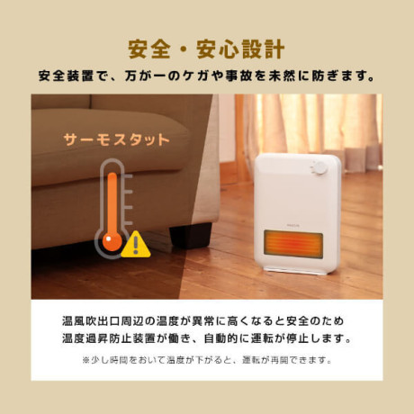 コンパクトタイプの2段階式セラミックヒーターサーモスタット搭載で万が一も安心。