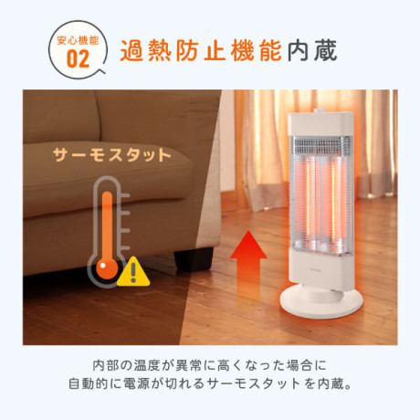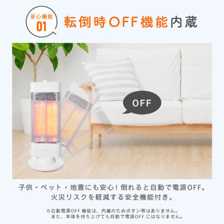 子供・ペット・地震にも安心!倒れると自動で電源OFF。