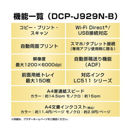 * A4文書インクコスト(カラー/モノクロ): 約11.4円(税込)/2.9円(税込)