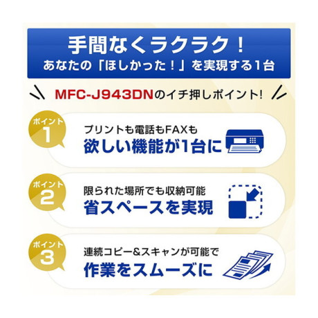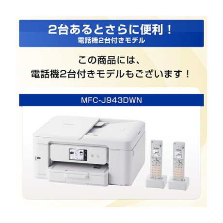 プリント、コピー、スキャン、ファックス、コードレス電話機、USB接続、スマホ接続、タッチパネル液晶、ADF(自動原稿送り装置)、自動両面プリント、ダイレクトプリント、前面給紙トレイ、4色独立インク