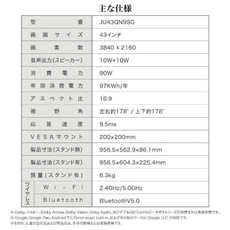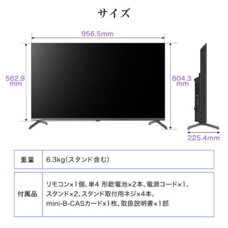 * 画面サイズ: 43インチ