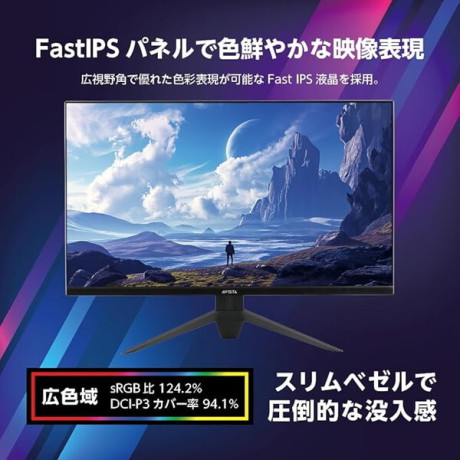 広視野角かつ優れた色彩表現が可能なFast IPS液晶を採用。さらにsRGB比124.2%、DCI-Pカバー率 94.1%に対応した高色彩パネルを採用しているためゲームなどのエンターテイメントだけでなく、動画の視聴・編集や写真加工などクリエイティブ活動にもお勧めです。