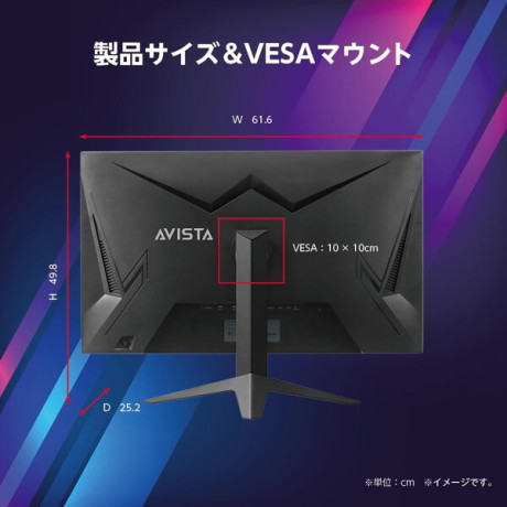 ウォールマウントの共通規格「VESA(100mm×100mm)」に対応。モニターアームやスタンドを使えば理想の位置や角度で利用できるため肩や首にかかる負担を軽減できます。また、モニター下がスッキリしてデスクが広く使えます。