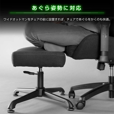 足をゆったり広げて乗せられ、あぐら姿勢にも対応します。