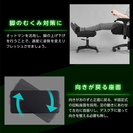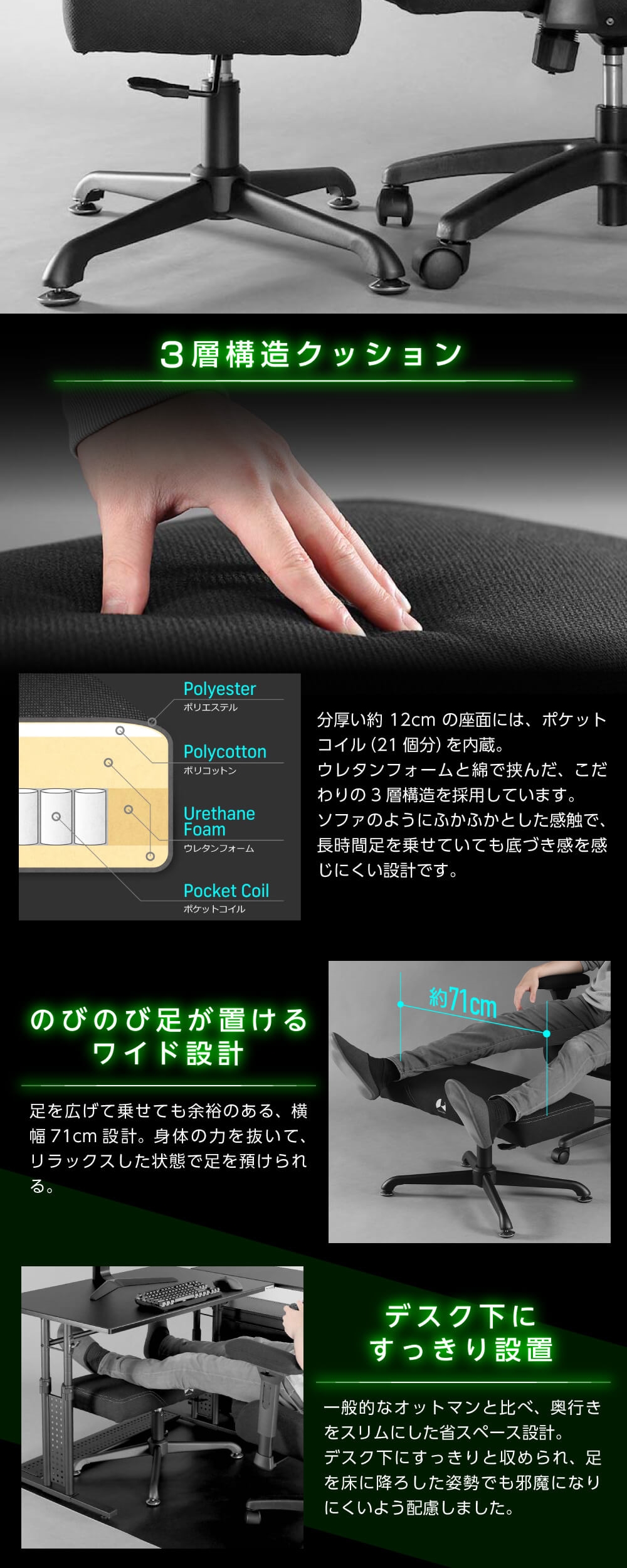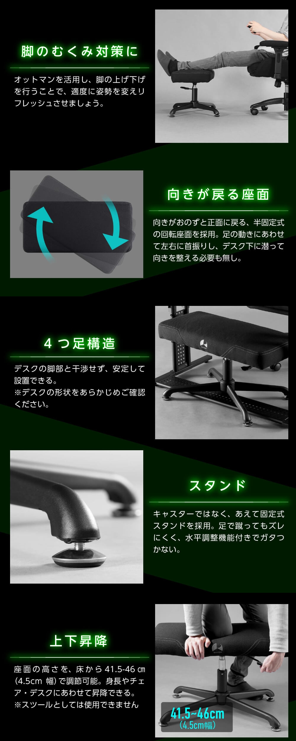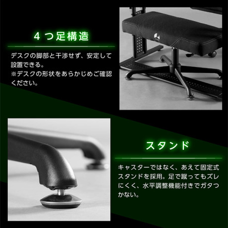 オットマンの脚部には4つ足構造を採用し、デスクの脚部と干渉せず、安定して設置できます。