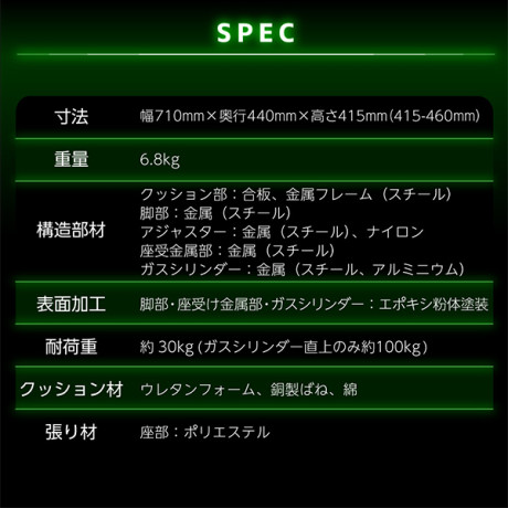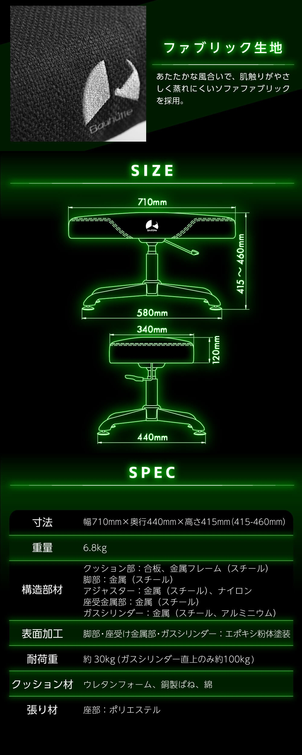 座面の高さを、床から41.5~46cm(4.5cm幅)で調節可能。