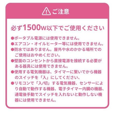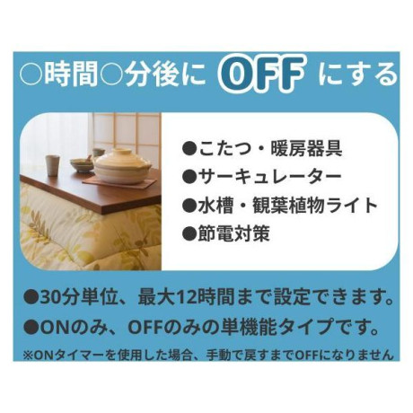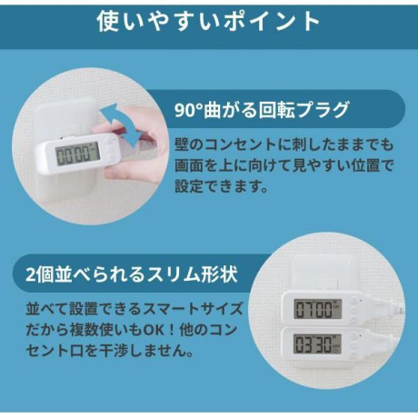 ★ 1. 30分単位で12時間まで設定可能!家電を自動でオンオフ!★ 2. 毎日決まった時間に作動する便利な繰り返し機能付き★ 3. 90°プラグが曲がるので見やすい!* 商品サイズ: 約幅80×奥行45×高さ34mm* 重量: 80g* 入力: AC100V 50/60Hz* 定格電力: 1500W* 最大定格: 1400W* 時間誤差: 月差±4分以内* 付属品: 取扱説明書・保証書