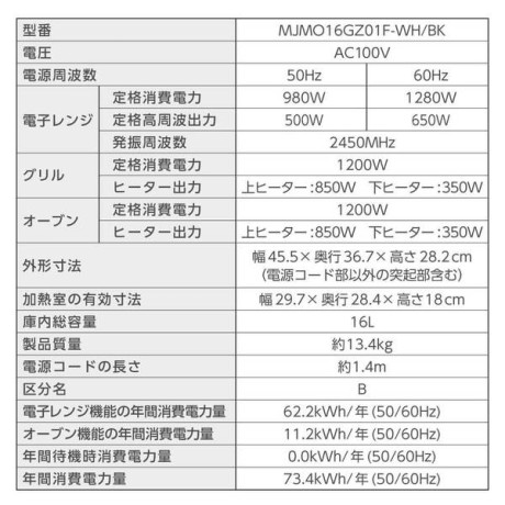* オーブン機能の年間消費電力量:11.2kWh/年 (50/60Hz)