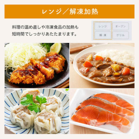 料理の温め直しや冷凍食品の加熱も短時間でしっかりあたたまります。