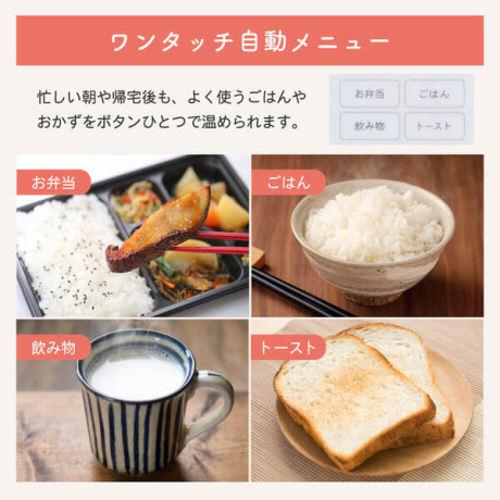 忙しい朝や帰宅後も、よく使うごはんやおかずをボタンひとつで温められます。