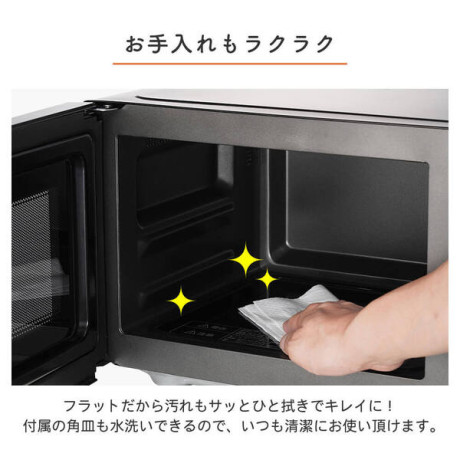 広々フラット庫内で、ピザやお弁当など大きなものもそのまま温められます。