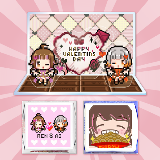 「ドキドキ!恋とアイのバレンタイン大作戦」イベントオリジナルアクリルスタンド&チョコレートセットです。
