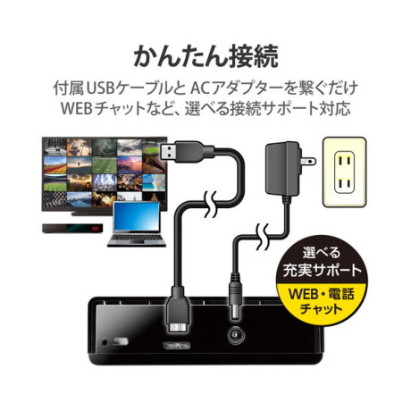 * 付属品:USB3.2(Gen1)(USB3.1(Gen1)/USB3.0/USB2.0互換)ケーブル(約0.9m ※コネクター含まず)×1、ACアダプター、ラバーフット×1シート(4個)