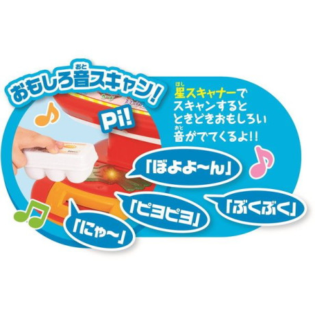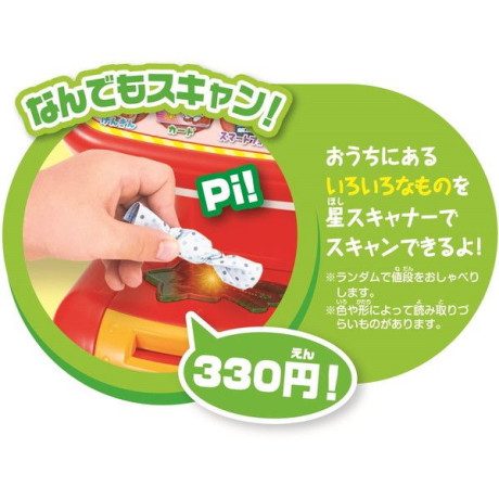 ★ 商品をスキャンする方法は2つ。アンパンマンのハンドスキャナーと星の形の非接触センサーでスキャンすることができます。価格の読み上げや、おしゃべり、メロディも重質しているから、ごっこ遊びを盛り上げます♪