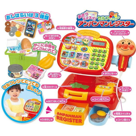 ★ いっぱいあそんで楽しくまなべる今どきアンパンマンのセルフレジ! おさつがスイスイ入り、コインもジャラッと出てくるから本格的なレジ遊びが楽しめます♪