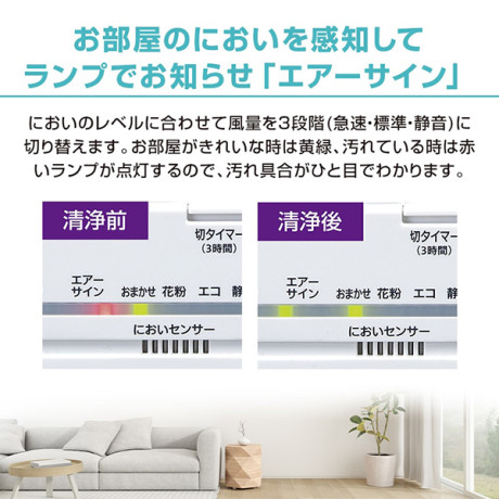 ★ 「においセンサー」がお部屋のにおいを感知してランプでお知らせ「エアーサイン」