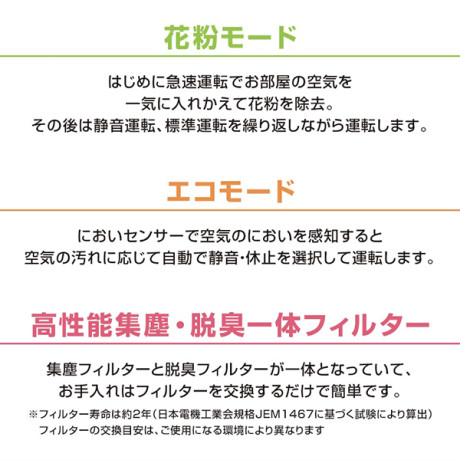 ★ 花粉を素早くパワフル除去「花粉モード」