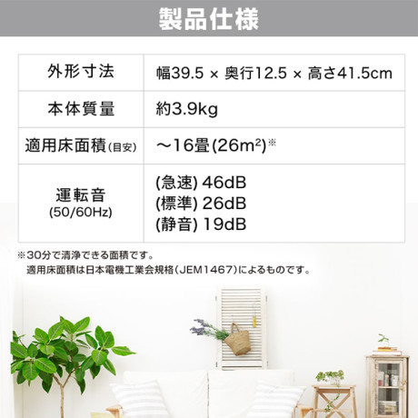 * 空気清浄適用床面積の目安:16畳
