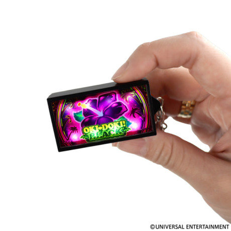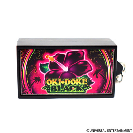 背面のスイッチを入れるとLEDが点灯し、「沖ドキ!BLACK」のパネルが光ります。