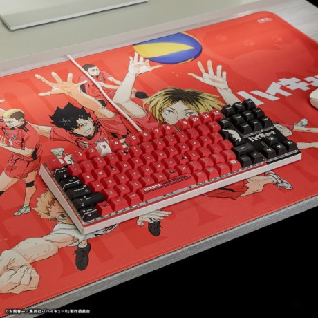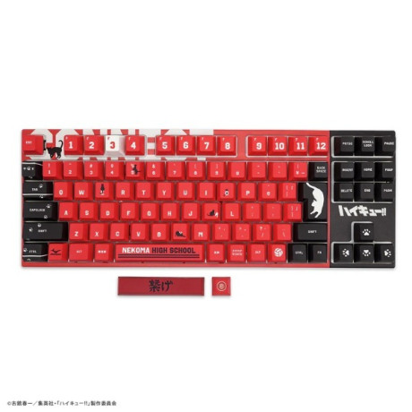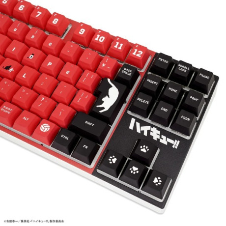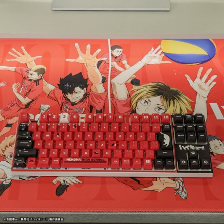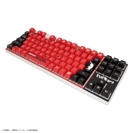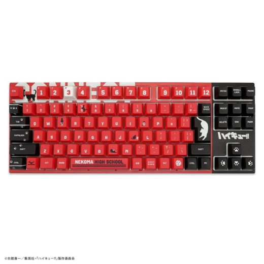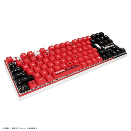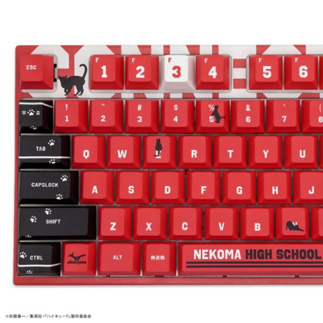 音駒高校のイメージを基にした配色に、猫のモチーフをいれたデザインの本格メカニカルキーボードです。 ボーナスキーキャップにはスクールアイコンと横断幕のデザインをご用意しました!